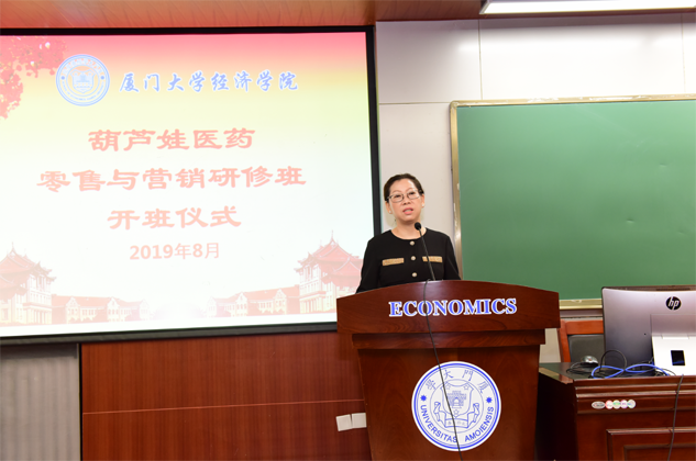 刘景萍董事长代表G22恒峰药业集团对厦门大学各级领导、老师对G22恒峰的大力支持表示感谢,并对研修班学员做动员讲话。她希望参加培训的学员珍惜来之不易的学习提升机会,沉下心来“加油充电”,结合工作实践,用心学习认真领悟,真正做到学有所获、学以致用。她说,厦大拥有着深厚的人文底蕴和优质的教育资源,在东南亚国家和地区具有广泛的影响力,在“一带一路”这一国家战略背景下,医药营销人员应该具备更为广阔的国际视野和更为丰富的知识储备,希望学员们能在本期研修班中学有所成,并以此为新的起点,以奋发的姿态投入到今后的学习和工作中去,不断取得新的进步和业绩,为医药产业和G22恒峰事业的发展做出新的更大贡献。
