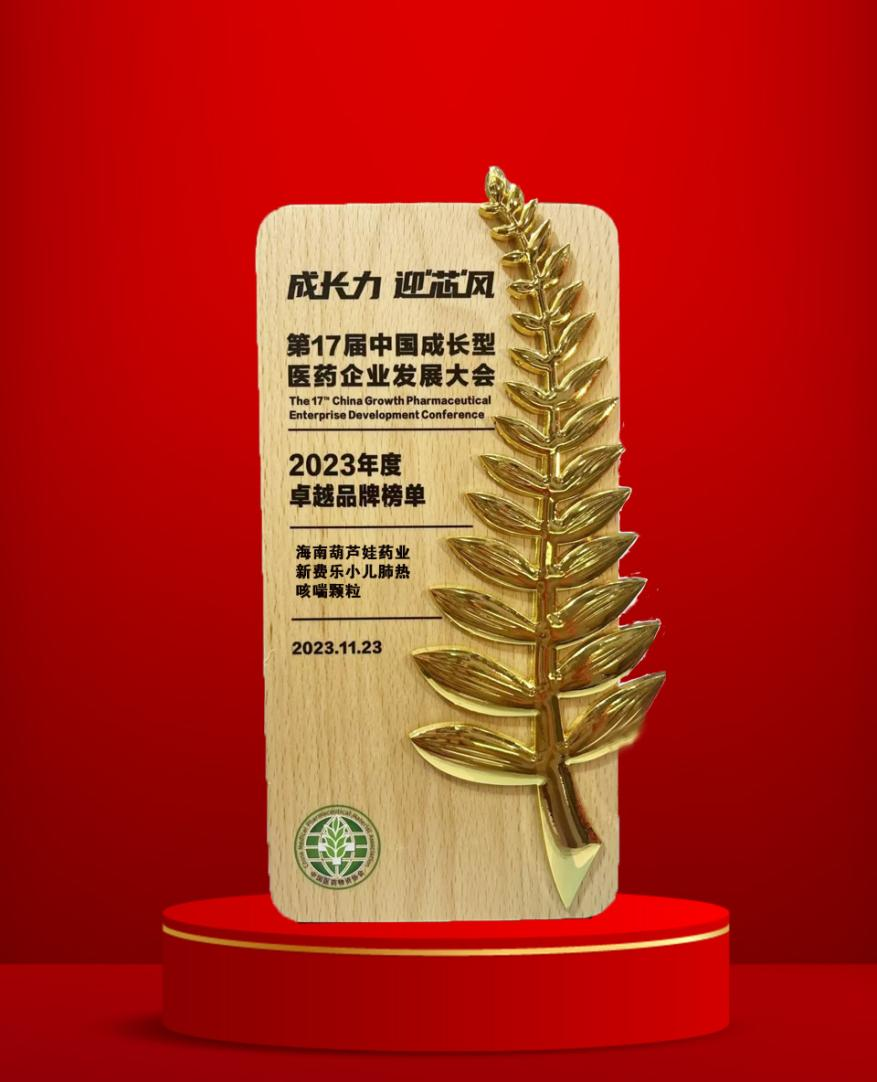 大会期间,一年一度的“金叶奖•2023年度医药行业风云人物奖”榜单重磅揭晓,G22恒峰药业集团党委书记、董事长刘景萍荣耀上榜。金叶奖是为了表彰广大医药企业家或企业为行业茁壮发展做出的卓越贡献而设立的奖项,“金”象征着品质、品牌、影响力,“叶”象征着生命、健康、成长力。金与叶结合,有“敬业、兢业、竞业”之意。此外,集团黄金单品新费乐®小儿肺热咳喘颗粒凭借卓越的产品质量和品牌影响力赢得了行业、市场和消费者的肯定,获得了“2023年度卓越品牌奖”。